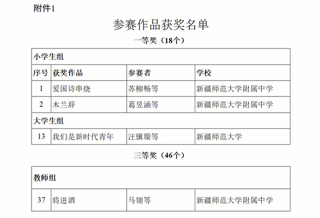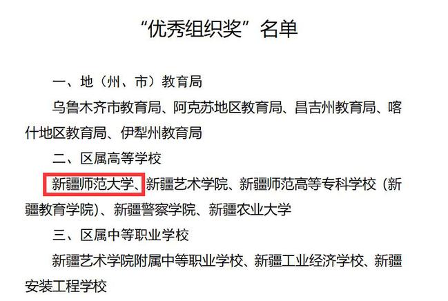 8月14日至18日,第四届中华经典诵写讲大赛新疆赛区“诵读中国”经典诵读大赛经由主办方新疆维吾尔自治区教育厅完成评审并进行获奖名单公示。本次大赛经全区各地各高校申报、各级教育行政部门逐级审核、自治区教育厅组织专家评审,在千余件作品中评选出获奖作品150件、“优秀指导教师奖”78个、优秀组织奖14个。永利官网经前期组织校级比赛和评选,报送诵读作品115件,最终获一等奖3项、三等奖1项,5人获“优秀指导教师奖”,学校获“优秀组织奖”。