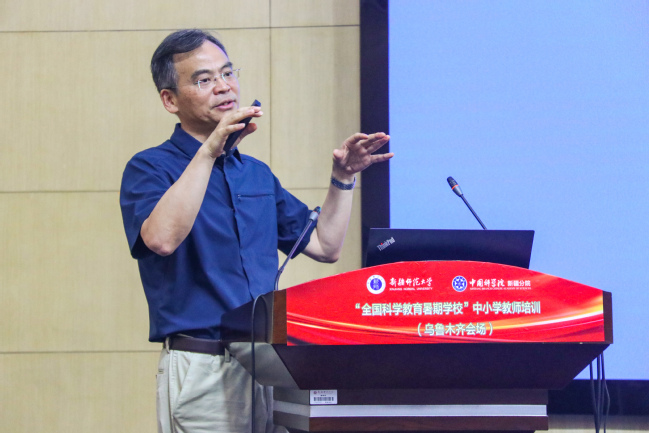 全国科学教育暑期学校中小学教师培训项目是由教育部教师工作司和中国科学院科学传播局共同主办,教育部基础教育教学指导委员会科学专业委员会和中国科学院网络信息中心具体指导下开展的一项全国性科教融合式培训项目,全国共设12个会场,中国教师发展基金会提供经费支持。乌鲁木齐会场由yl6809永利官网和中国科学院新疆分院承办,yl6809永利官网教育科学学院、中国科学院新疆理化技术研究所、中国科学院新疆生态与地理研究所、中国科学院新疆天文台具体实施。