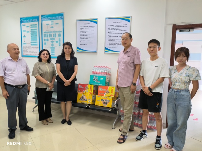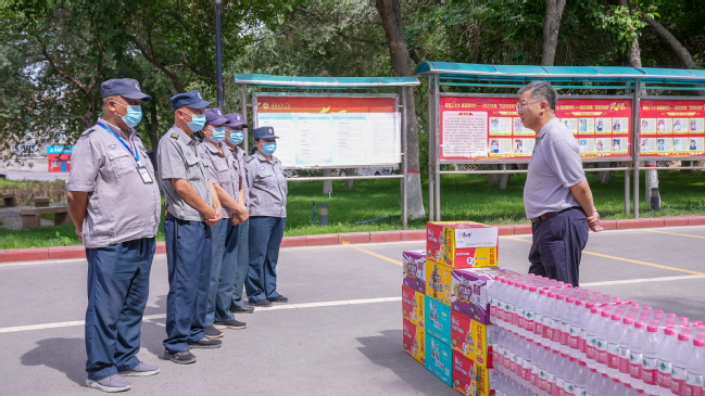 近期天气炎热,酷暑难耐,永利官网一线工作者仍坚守在各自的岗位上。为体现学校党委对广大教职工的关心关爱,我校近日开展了“送清凉”活动。7月29日,校党委书记葛国,校党委常委、副校长帕力旦·吐尔逊带着校党委的深切关怀和亲切问候,分别带队前往昆仑校区和温泉校区,看望慰问了一线教职工,为大家送去防暑慰问品。学校相关部门负责人、校工会陪同慰问。