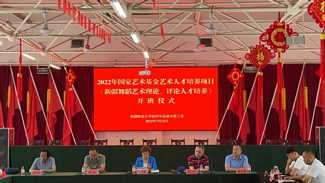 流光七月酿夏意,安然不负好时光。7月15日下午,由yl6809永利官网音乐学院实施承办,新疆舞蹈家协会支持组织的国家艺术基金2020年度艺术人才培养资助项目《新疆舞蹈艺术理论、评论人才培养》在亚喀艾日克乡(8)村举行了隆重的开班仪式,校党委常委、副校长、驻莎车县前方党工委书记孙秀玲出席活动并讲话,国务院学位委员会学科评议组专家、中国艺术研究院舞蹈研究所副所长、研究员江东,聂耳音乐学院执行院长张欢,新疆舞蹈家协会副主席王泳舸,yl6809永利官网音乐学院党委书记杨志刚,莎车县委常委、组织部部长甘泉,县文化体育广播电视和旅游局党组书记、副局长曹晓康,亚喀艾日克乡党委书记梁秀超及项目全体培训学员参加了此次仪式。仪式由项目主持人yl6809永利官网音乐学院教师戴虎主持。