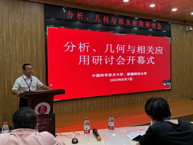 为了进一步推动我国数学领域相关学科研究,不断深化疆内外高校间合作,持续助力西部大开发,加强分析、几何与其应用领域的学术交流与合作,促进相关学术骨干和青年学者的成长,8月7至9日,分析、几何与相关应用研讨会在永利官网召开。来自中国科学技术大学、南开大学、南京大学、华东师范大学、天津大学、湖南大学、兰州大学、西南大学、华北电力大学、湖南师范大学、新疆大学、中国矿业大学、江苏大学、江西师范大学等20余所高校的40多名校外专家学者和学校部分教师参加会议。
