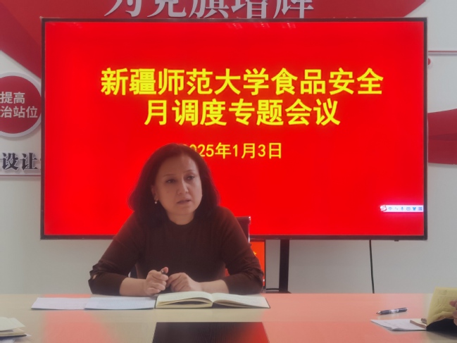 按照食品安全工作要求,为进一步强化食品安全主体责任落实,守护师生舌尖上的安全,1月3日,永利官网在温泉校区召开食品安全“月调度”专题会议。校党委常委、副校长、校食品安全总监帕提曼·吐尔逊出席会议,会议由永利官网后勤综合服务中心主任吕军主持。