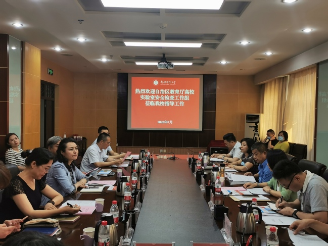 会上,陈勤代表检查组从高校实验室安全检查目的、意义、组织纪律和检查流程等方面提出要求。帕力旦·吐尔逊代表学校党委对自治区教育厅检查组莅临永利官网指导工作表示欢迎,强调了学校高度重视实验室安全,大力推进实验室建设,取得了突破性进展,希望通过检查组进校指导,全面提升永利官网实验室安全管理水平,切实维护校园安全稳定和师生生命财产安全,以实际行动迎接党的二十大的召开。李进从学校基本情况、实验室安全责任体系与规章制度建设、实验室安全教育、实验室安全隐患排查与整改落实情况、特色工作、存在问题等方面进行了工作汇报。