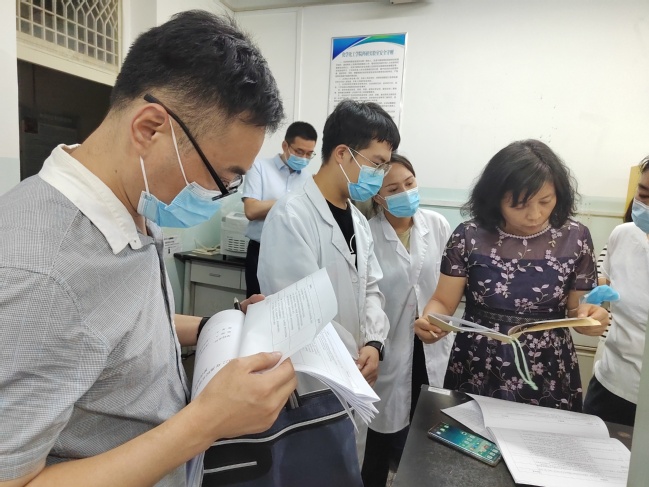 会后,检查组前往化学化工学院、生命科学学院、地理科学与旅游学院、物理与电子工程学院实验室,对照《高等学校实验室安全检查项目表(2022年)》逐条进行实地检查,并对实验室安全责任体系建立、规章制度建设、实验室安全专职人员设立、安全经费投入等档案资料进行了查阅。