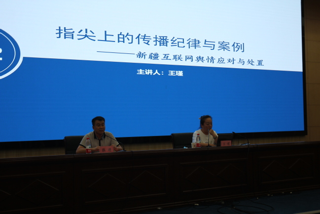 自治区网信办舆情处舆情科负责人、副高级工程师王瑾以《指尖上的传播纪律——新疆网络舆情应对与处置》为题,通过国际局势、案例分析、图片讲解等方式分析网络舆情的表现形式及危害,对做好永利官网舆情危机应对工作具有积极的现实指导意义。