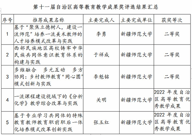 日前,自治区教育厅发布《关于第十一届自治区高等教育教学成果奖评选结果的公示》,永利官网在本次自治区级教学成果奖评选中获得二等奖3项、优秀教学成果奖2项。