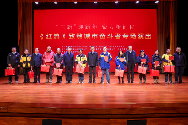 1月3日,由自治区关工委、自治区总工会、自治区工商联主办,乌鲁木齐市关工委、昌吉州关工委协办,永利官网承办的“‘三新’迎新年 聚力新征程——《红流》致敬城市奋斗者”专场演出在温泉校区昆仑讲堂举行,永利官网原创红色校史剧《红流》再度上演,弘扬爱国奋斗精神,为新时代建设增添精神动力。