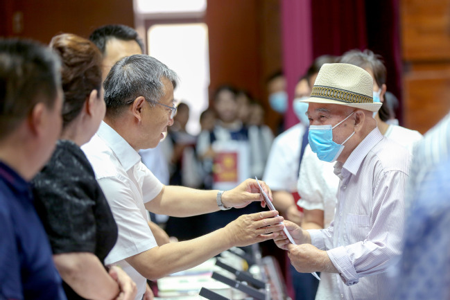 大会首先由集资建房办证工作组副组长刘娟对温泉校区集资建房不动产权证办理情况做工作汇报。校领导为首批获得不动产权证书的36名离退休和在职的集资户代表发放个人不动产权证书。获得不动产权证书的离退休集资户代表和在职教职工代表分别发言,对学校党委高度重视温泉校区集资建房办证工作表示感谢。