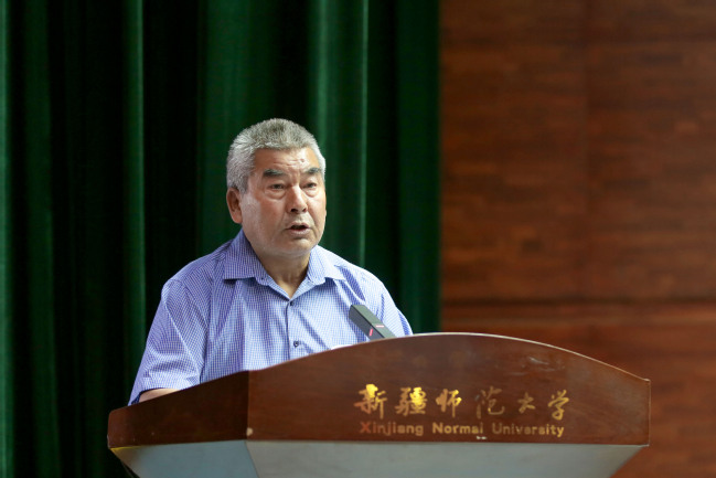 离退休教职工代表库尔班·卡得尔发言
