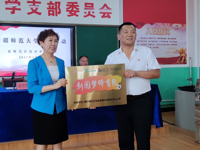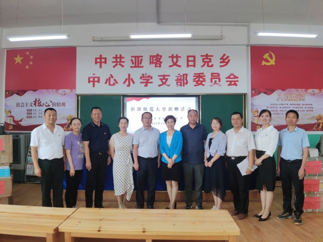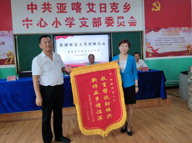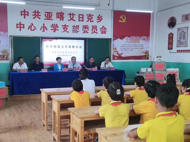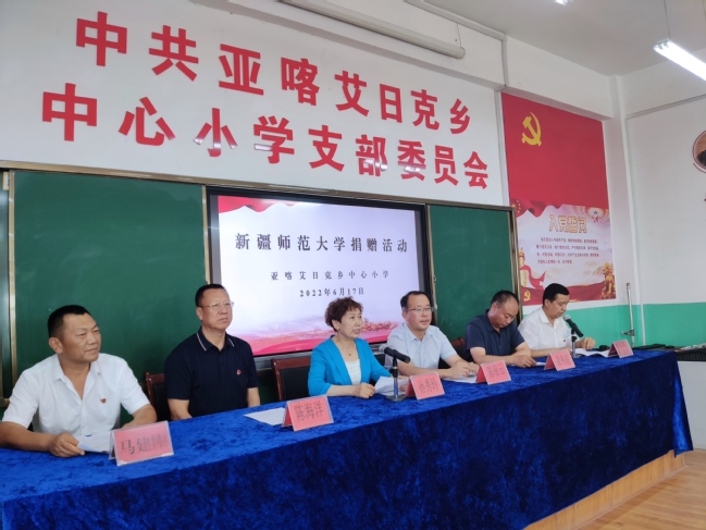 孙秀玲在讲话中说,自20213月起,学校开启助力亚喀艾日克乡教育教学工作,学校党委充分依托学校教育优势,在帮扶内容、帮扶机制上做好顶层设计,把对亚乡小学的帮扶作为“访惠聚”工作的重要任务,通过派驻经验丰富的管理干部、骨干教师和实习支教学生,充实优化教师队伍,提升办学水平;通过开展“双师课堂”,创新教学模式,安装专网并购置平板电脑,做好教学保障工作;开展假期“小课堂”、组织夏令营活动等,提高亚乡小学教育教学质量;制定《中华优秀传统文化进校园实施方案》,深入推进文化润疆工作落实落小,铸牢中华民族共同体意识,已初步形成“日常教学+周末小课堂+假期小课堂+夏令营”的教育帮扶模式。为改变亚乡小学办学条件和学习条件,学校用全体党员捐款形成的“初心基金”连续两年向亚乡小学捐赠包括图书、教学设备等,充分体现了新疆师大党委和全体教职工们对亚乡孩子们的关心关爱,也是师大人教育情怀和社会责任的具体体现。