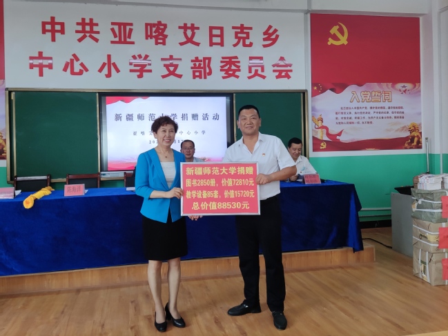 按照学校党委工作部署,为扎实推进对莎车县亚喀艾日克乡中心小学的教育帮扶工作,改善其办学条件、优化教学管理体制机制提高办学质量和办学水平6月17日,永利官网向亚喀艾日克乡中心小学捐赠仪式在乡中心小学举行。校党委常委、副校长、驻莎车县前方党工委书记孙秀玲出席捐赠仪式并讲话,莎车县委常委、宣传部部长、教育工委书记陈保云,莎车县教育局党委书记、副局长陈海洋,亚喀艾日克乡党委书记梁秀超,亚喀艾日克乡中心小学党支部书记马建刚,校长吐尔洪江·图尔孙,莎车县教育局干部、附属中学送教教师和部分工作队队员等参加仪式。捐赠仪式由吐尔洪江·图尔孙主持。