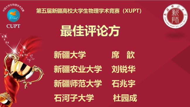 5月27日至5月29日,由新疆物理学会牵头组织,永利官网物理与电子工程学院、“新疆发光矿物与光功能材料研究”自治区重点实验室承办的第五届新疆高校大学生物理学术竞赛(新疆赛区)在永利官网隆重举行。本届竞赛采用线上形式开展,共分四个轮次,每个轮次在五个腾讯会议赛场经过三或四个比赛阶段完成。来自新疆大学、石河子大学等6所高校的18支参赛队伍共计150余名师生参加了本次比赛。塔里木大学、新疆工程学院、伊犁师范大学、昌吉学院师生代表线上进行观摩。