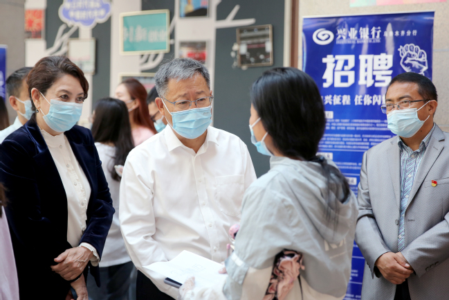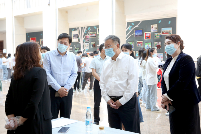 校党委书记葛国,副校长古丽帕丽·阿不都拉,党委常委、宣传部部长高靖来到招聘会现场,与用人单位深入沟通,了解其招聘岗位需求,并与现场的毕业生们亲切交流,一一询问同学们的求职情况及求职意愿,给予悉心指导和耐心解答。