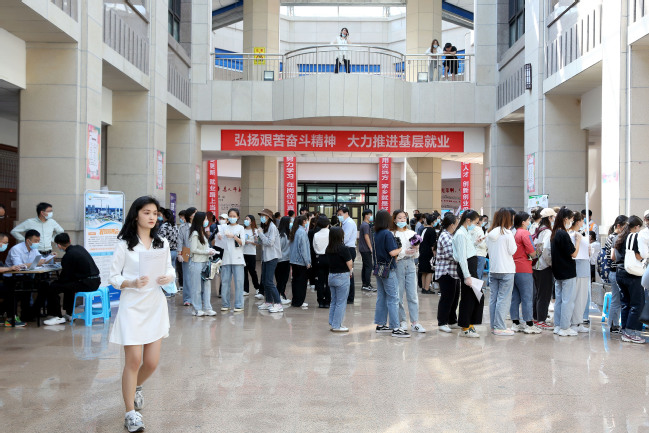 校领导与毕业生现场交流了解就业意向
