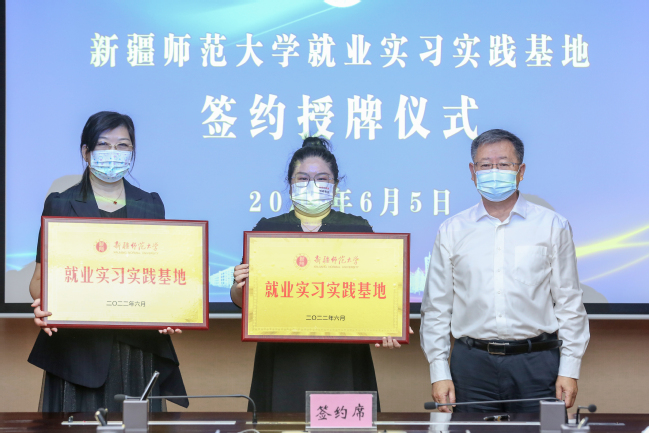 签约仪式上,葛国代表学校分别与新疆大荒龙垦食品有限公司、新疆天天向上教育培训有限公司签定《就业实习实践基地协议》,并为其授牌。学校就业实习实践基地的建立,标志着永利官网学子又多了一个实习实践的阵地和接触社会、锻炼自己、展示自我的平台。会上,葛国为参会企业介绍了永利官网基本情况,并指出通过此次就业实习实践基地的建设,搭建了高校和企业联系和沟通的桥梁,迈出了探索校企合作、优势互补、资源共享的育人新模式的关键一步,为更好地培养爱国、爱疆、担当、奉献的社会主义建设者和接班人打下良好基础。今后,希望学校能与更多用人单位建立就业合作项目,帮助学生增加职业经历,学习择业和就业技巧,提高就业竞争力,为大学生将来步入社会做好充足准备。企业代表新疆大荒龙垦食品有限公司董事长郝继霞介绍了该公司的发展历程,她表示希望通过就业实习实践基地的建立,更好地发挥企业服务社会的作用,协助学校培养出更多的有用之才,为社会经济发展做出应有贡献。