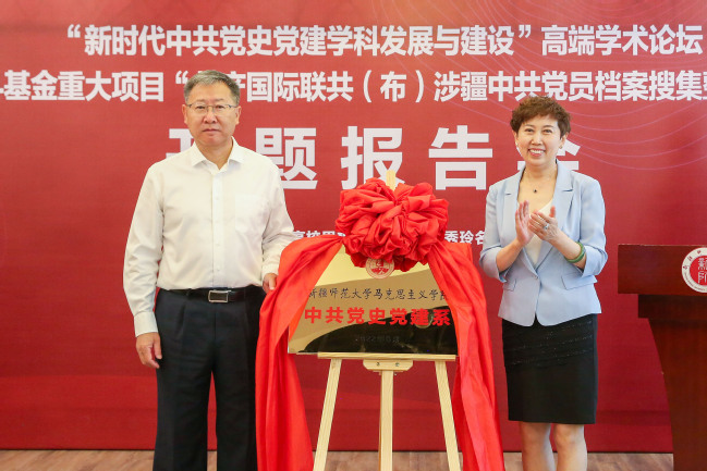 校党委书记葛国与校党委常委、副校长、马克思主义学院院长孙秀玲共同为马克思主义学院中共党史党建系揭牌