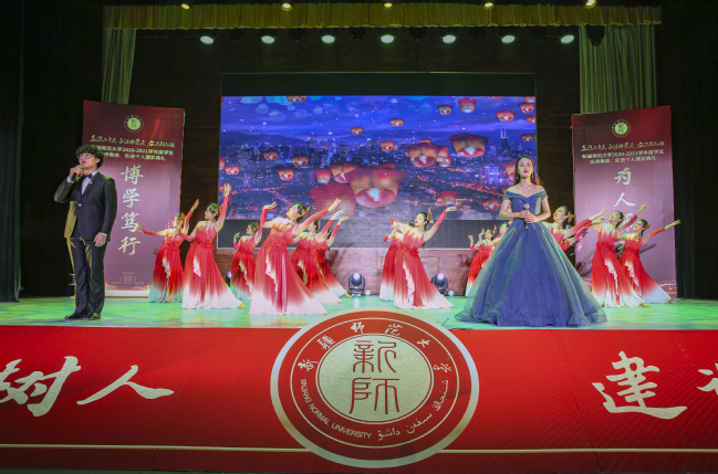 典礼共分为五个篇章。“红旗传万代 青年伴国行”篇章表彰五四红旗团委、红旗团支部、优秀共青团干部、优秀共青团员,通过红旗团支部获奖代表分享和歌伴舞《灯火里的中国》,呈现了怀揣理想的新师青年听党话、跟党走,以舍我其谁的担当和一往无前的执着,书写伟大时代的青春华章;“山河换锦装 青年勇担当”篇章表彰优秀学生标兵、社会实践先进个人、文体艺术先进个人,通过社会实践先进个人获奖代表分享和诗歌朗诵《我们是新时代青年》,生动诠释了在改革春风中成长起来的青年意气风发,以及新师学子对党的百年风华和辉煌伟业的真诚赞歌;“改革春风暖 青年展鸿鹄”篇章表彰“挑战杯”国赛获奖人员、师范生微课大赛获奖人员、研究生专业比赛获奖人员、科技创新先进个人,通过“挑战杯”国赛获奖代表分享和歌伴舞《青春恰时来》,彰显出新师青年与时代同向同行、共同前进的青春印记;“蓝图筑梦圆 青年强国梦”篇章表彰新师学子奖章、优秀学生干部、先进学生会、十佳社团,通过新师学子奖章获奖代表分享和舞蹈《爱我中华》,展现了新师青年“吾辈必当勤勉,持书仗剑耀中华”的壮志;“奋斗新时代 青年壮志雄”篇章表彰各类国家奖学金获得者、校级“三强班级”、“三好宿舍”,通过国家奖学金获得者分享和讲述《我的“三强班级”》展示了永利官网青年学生自律自信、奋进担当、传承力行的精神品质,为全体学生树立标兵典范。