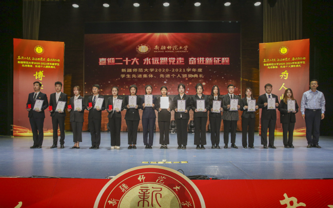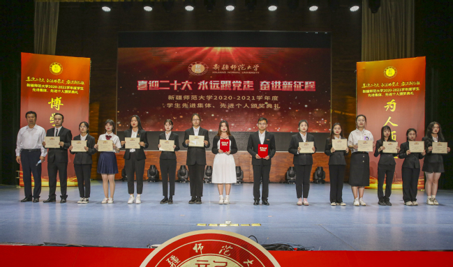 为新师学子奖章、优秀学生干部、先进学生会、十佳社团获奖代表颁奖