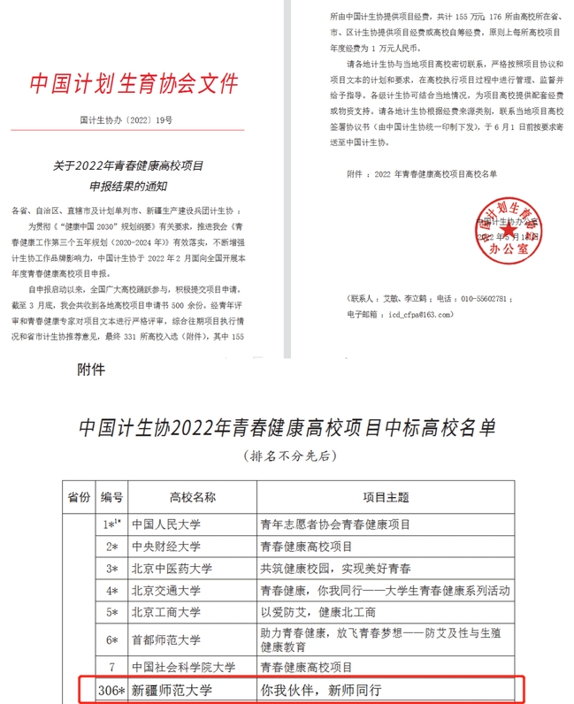 近日,中国计划生育协会发布《关于2022年青春健康高校项目申报结果的通知》(国计生协〔2022〕19号),永利官网心理学院与心理气象站学生社团共同申报的“你我伙伴,新师同行”项目从500余份高校项目中脱颖而出,成功入选2022年青春健康高校项目,成为155所由中国计划生育协会提供项目经费的A类项目高校之一。