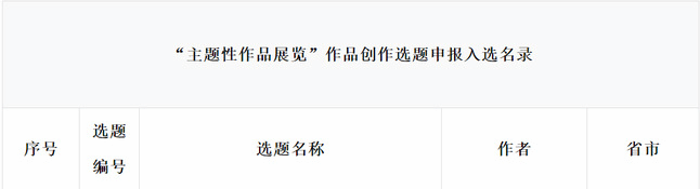 《“主题性美术作品展览”作品创作选题申报入选名录》