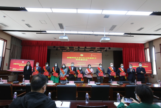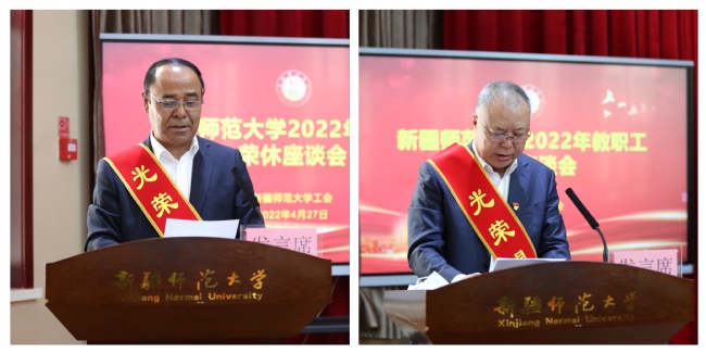 座谈会上,于祥成宣读了《致退休教职工的一封信》,原纪律检查委员会副书记阿巴斯·买买提、原体育学院教师沈林作为退休教师代表发言,校领导为退休教职工赠送荣休纪念册。