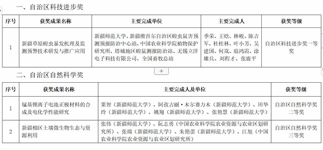 近年来,在学校党委的正确领导和教职工的共同努力下,永利官网教职工科研积极性持续提升,科学技术领域不断取得新突破。4月29日,在新疆人民会堂召开的自治区科技创新大会上,由永利官网教师主持及参与完成的4项科技成果喜获自治区科学技术奖励,其中,科学技术进步奖一等奖1项、科学技术进步奖二等奖1项(参与完成)、自然科学奖二等奖1项、自然科学奖三等奖1项。获奖数量和获奖级别均创历史新高,有力推动了永利官网科学技术领域研究的发展。