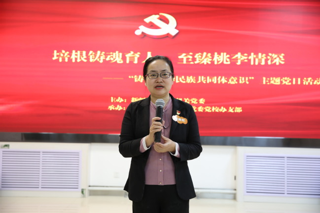 为弘扬爱国主义精神,有形有感有效做好铸牢中华民族共同体意识工作,积极开展“三进两联一交友”活动,推动各族师生进一步交往交流交融,4月20日下午,由学校机关党委主办、党校办支部承办的“培根铸魂育人,至臻桃李情深”——铸牢中华民族共同体意识主题党日活动在温泉校区举行。校党委书记葛国,党委副书记、副校长于祥成,党委常委、纪委书记王志勇,党委常委、副校长帕力旦·吐尔逊,党委常委、组织部部长李建荣以普通党员身份,同机关党委22个党支部的党员代表们及“三进两联一交友”结对学生一同参加了活动。