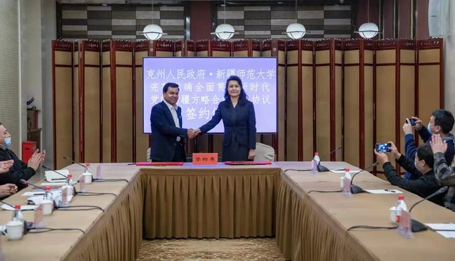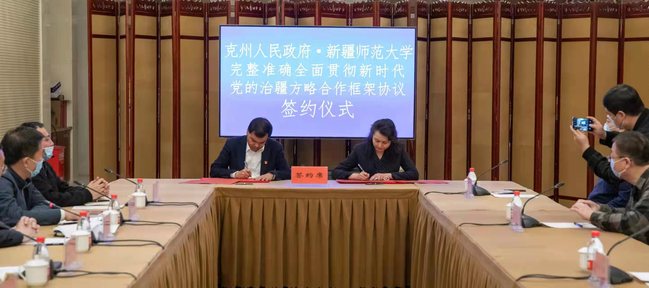 3月21日,校党委常委、副校长帕力旦·吐尔逊一行赴阿图什市,代表学校与克孜勒苏柯尔克孜自治州人民政府签订了《克孜勒苏柯尔克孜自治州人民政府——yl6809永利官网完整准确贯彻新时代党的治疆方略合作框架协议》,克孜勒苏柯尔克孜自治州副州长阿不都卡德尔·毛尼亚孜参加签订仪式。