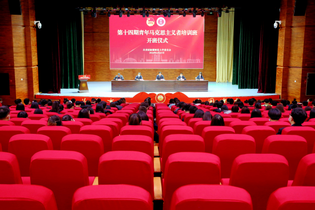 为深入学习贯彻习近平新时代中国特色社会主义思想和习近平总书记关于青年工作的重要论述,深化实施“青年马克思主义者培养工程”,培养一支政治坚定、德才兼备、勇担重任、全面发展的青年队伍,成为中国特色社会主义事业的建设者和接班人。3月23日下午,yl6809永利官网团校第十四期青年马克思主义者培训班开班仪式在温泉校区昆仑讲堂举行。校党委常委、宣传部部长高靖出席开班仪式并为青马班授旗。组织部副部长、化学化工学院党委书记张鑫,学生工作部(处)处长张进,校团委书记陆娇,各学院团委书记和第十四期青马班全体学员参加开班仪式。会议由校团委副书记卢修配主持。