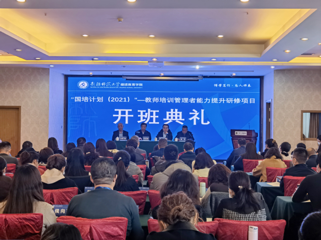 3月7日上午,“国培计划”——教师培训管理者能力提升研修项目开班典礼在宇豪海逸酒店三楼会议室举行。校党委常委、副校长李魁铭,自治区教育厅教师工作处处长李亮,继续教育学院党总支书记买合苏提·亚森出席开班典礼,继续教育学院院长徐可主持开班典礼。来自全区各地(州、市)、县(市、区)教师培训工作主管领导、师训负责人以及承担 “国培计划”“区培计划”的院校机构代表共200余人参加典礼。