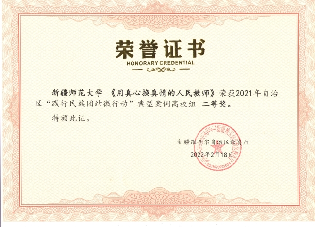 永利官网组织部报送作品《用真心换真情的人民教师》获得“践行民族团结微行动”典型案例高校组二等奖;学生工作部(处)报送作品《聚是一团火,散是满天心》获得“讲好身边的民族团结故事”视频作品高校组二等奖,作品《在新师,遇见更好的我们》获得“讲好身边的民族团结故事”视频作品高校组三等奖;预科教育学院报送作品《以中华文化铸魂,绘民族团结画卷》获得“加强民族团结教育,铸牢中华民族共同体意识”典型案例高校组三等奖。