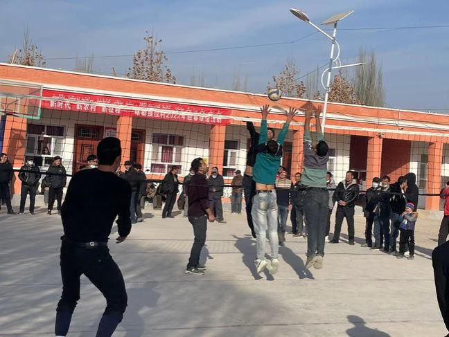 喀勒提拉村迎春联谊活动中激烈的排球比赛