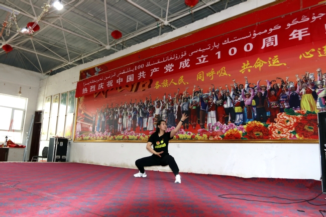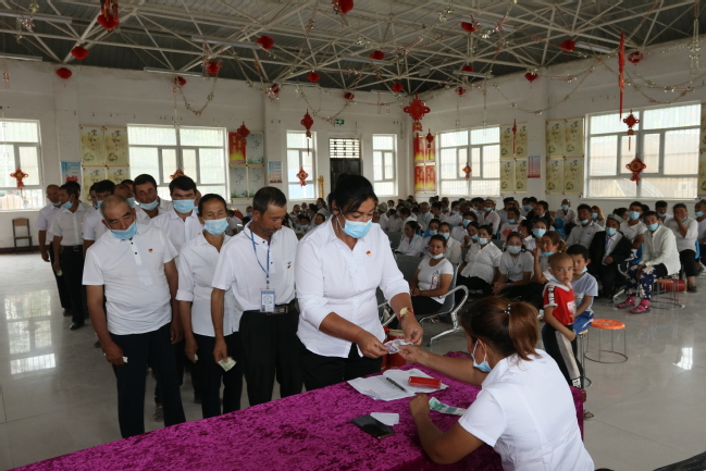 在团结村,看完庆祝大会直播后,村里组织开展了庆祝建党100周年活动,对4位“优秀共产党员”和4位“民族团结先进个人”进行表彰,还对老党员和家庭困难党员进行了慰问。新党员进行了入党宣誓,老党员重温了入党初心。工作队党支部还每人自发交纳100元党费庆祝中国共产党成立100周年。在随后的文艺演出中,村党支部党员为大家带来了《宣誓歌》,全体党员和村民代表共唱了《没有共产党就没有新中国》,参加暑期实践的师大学子刘佳浛为大家献上了武术表演《中国功夫》,村文艺队表演了腰鼓舞、扇子舞等,现场笑声掌声不断。