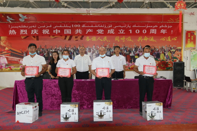 村党支部副书记图尔贡·图如普表示,中国共产党是全世界最伟大、最光荣的党,我们要紧紧跟随党的领导,热爱祖国,勤奋工作,更加严格地要求自己,发挥好党员先锋模范作用,为党和国家事业做贡献。村“四老人员”拜合提·托合提表示,我们百年大党恰是风华正茂,在党的领导下,新中国成立了,社会主义实现了,改革开放成功了,香港、澳门回归了,祖国繁荣富强了,老百姓过上了幸福美好的生活了。我们要珍惜现在的美好生活,永远感党恩、听党话、跟党走!
