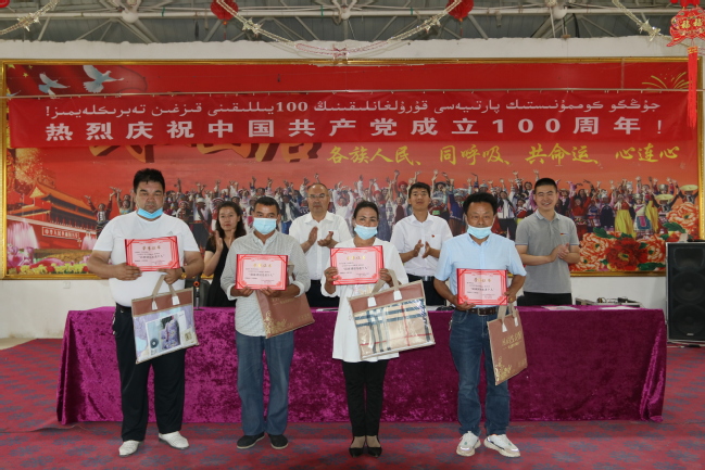 “在早上观看庆祝中国共产党成立100周年活动之后,参加咱们村里组织的庆祝活动,感觉作为一名共产党员的自豪感、使命感更强了,我们平时工作起来也更加有劲了。”村委会主任亚森·图尔迪说。“我们就是要通过这种形式,以更接地气的方式,让大家感受到中国共产党成立这100年来所创造的辉煌,让大家重温一下近些年来身边发生的变化,进一步坚定感党恩、听党话、跟党走的决心和信心。”村第一书记、驻村工作队队长赛甫鼎·艾拜说。