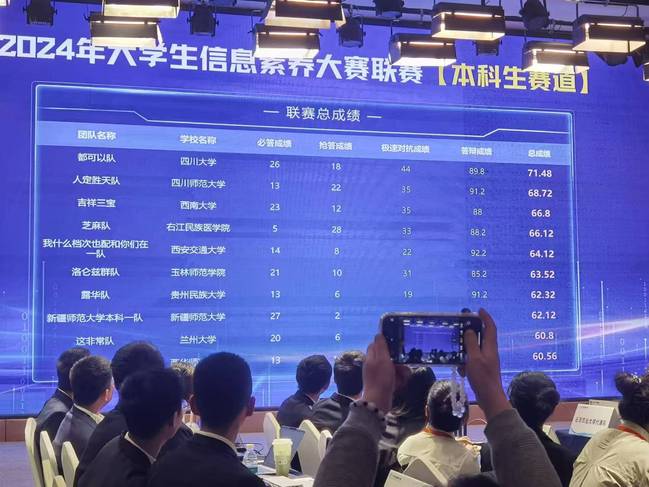 2024年大学生信息素养大赛自开赛以来,17个省、市、自治区的295所本科高校共8.8万余名学生报名参赛。其中,新疆赛区有15所本科院校共5016名学生参赛。经过参赛学校选拔推荐和省级淘汰赛及决赛,最终13个省、市、自治区选派的39所高校42支参赛代表队进入全国联赛。联赛中,经过“极速对抗”和“现场答辩”两个环节的激烈角逐,由永利官网计算机科学技术学院学生黄琪珊、张学府和物理与电子工程学院学生柳旭泽3人组成的“本科一队”最终荣获本科生组二等奖。