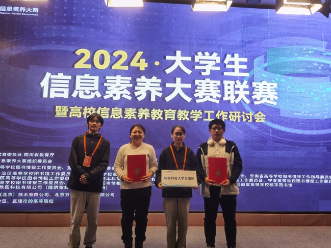 12月5日,“2024年大学生信息素养大赛联赛暨高校信息素养教育教学研讨会”在重庆大学举行。永利官网代表队在联赛中荣获二等奖,图书馆宋瑞霞老师被评为优秀指导教师。