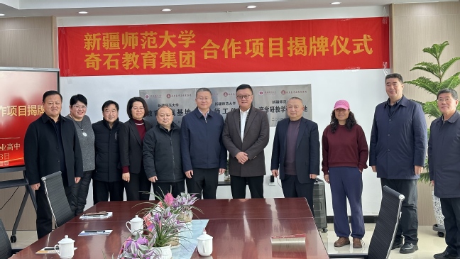 为共同培养高素质基础教育教师,提升大中小学及职业学校协同育人实效,12月13日,校党委常委、副校长陈彤率教务处副处长马晓东、附属中学副校长李雁飞、管委会主任徐建勇一行赴博湖县,与奇石教育集团联合举行了“教育实践基地”、“产学研教学研究基地”和“名师工作坊”揭牌仪式。库尔勒市委常委高胜,库尔勒市教育局党委书记张历芳,博湖县委副书记、县长山加甫,巴州教育局副局长荣涛,博湖县委副书记李向华,博湖县人民政府副县长米日古丽·吐尼亚孜等领导嘉宾出席了此次揭牌仪式。