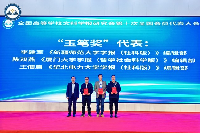 在12月18日召开的全国高等学校文科学报研究会第十次全国会员代表大会上,宣布了第八届高校社科学术期刊质量评估与检查活动结果,永利官网期刊社社长李建军荣获“玉笔奖”及“全国高校社科期刊优秀主编(编辑部主任)”称号;《yl6809永利官网学报(哲学社会科学版)》编辑潘静静荣获“全国高校社科期刊优秀编辑”称号;《语言与教育研究》编辑向美林撰写的论著《浅谈高校学报专栏主持人制度发展路径》荣获“全国高校社科期刊优秀编辑学论著”。在此次会员代表大会换届选举中,永利官网期刊社社长李建军新当选全国高等学校文科学报研究会第十届理事会常务理事、副秘书长。