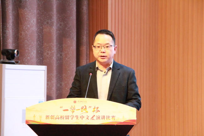 11 月 30 日,“一带一路”杯新疆高校留学生中文演讲比赛在永利官网温泉校区举行。来自新疆医科大学、新疆农业大学、新疆财经大学、喀什大学、新疆艺术学院、乌鲁木齐职业大学及永利官网共7所高校的留学生参与比赛。校党委常委、统战部部长彭无情出席活动,各参赛高校相关部门或学院领导和特邀专家担任比赛评委。