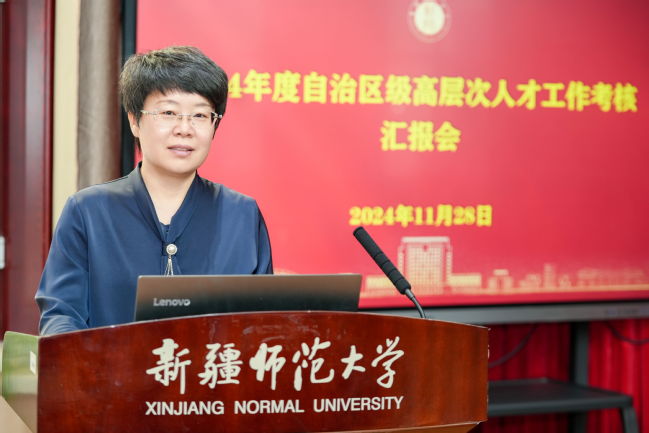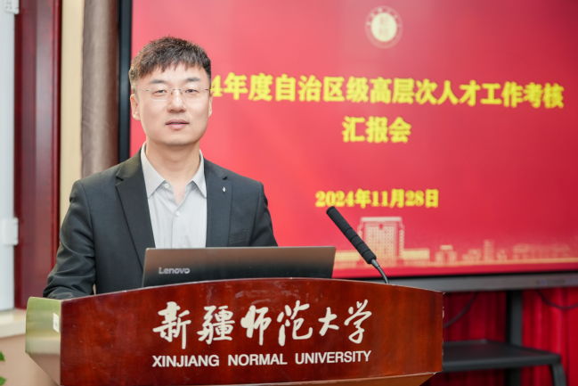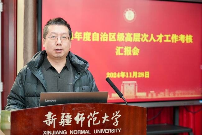 入选自治区级高层次人才部分学院依次汇报年度工作情况,详细展示了学院引才用才等情况,重点介绍了特聘教授、小组团援疆和柔性援疆专家人才工作目标任务完成情况和今后的工作计划,并对考核小组的提问进行解答。