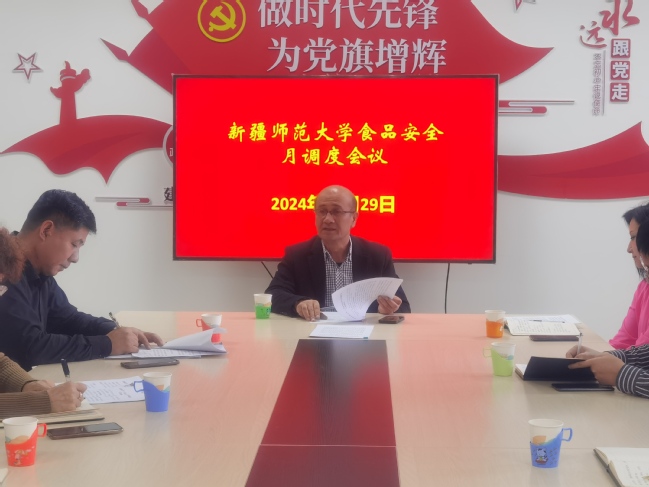 为进一步贯彻落实市场监管总局第60号令,强化学习自治区市场监督管理局颁布的地方标准和团体标准,细化工作落实情况,全力保障广大师生“舌尖上的安全”,11月29日下午,永利官网召开食品安全“月调度”会议,校党委副书记、校长吾满江·艾力,校党委常委、副校长、校食品安全总监帕提曼·吐尔逊出席会议。会议由后勤综合服务中心主任吕军主持。