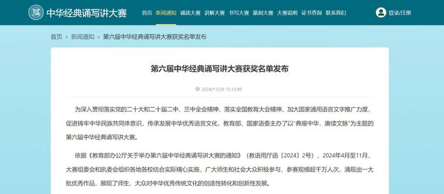 近日,由教育部、国家语委共同主办的第六届中华经典诵写讲大赛全国总决赛获奖名单正式公布。永利官网多名师生在本次比赛中表现卓越,斩获28项国家级奖项,并获得2项优秀组织奖。