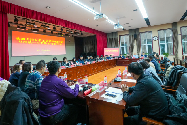 11月7日,天津大学工会常务副主席马桂秋带领青年教师一行来永利官网学习交流。校党委常委、副校长帕力旦·吐尔逊出席座谈会,永利官网党委人才工作办公室、党委统战部、党委教师工作部、党委学生工作部、校工会、科学技术处、化学化工学院、教育科学学院、生命科学学院相关负责同志和部分二级工会主席参加座谈。会议由校工会常务副主席萨拉木·马合木提主持。
