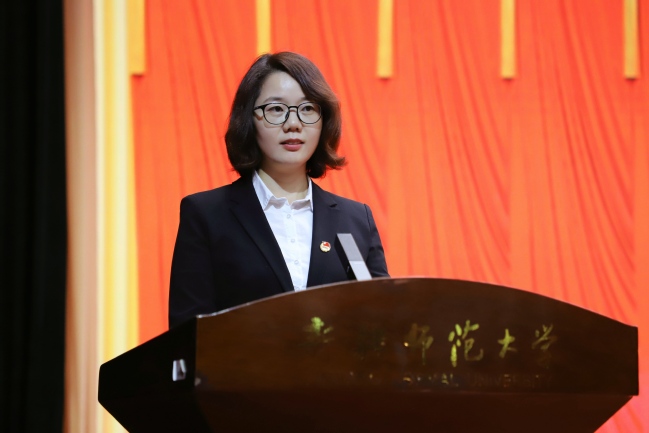 校团委书记陆娇主持大会第一次全体会议暨开幕式