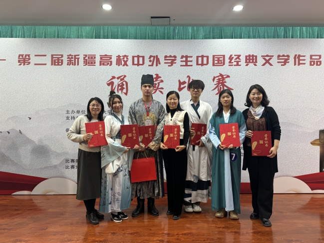 11月9日,第二届“新疆高校中外学生中国经典文学作品诵读”比赛和外国留学生“我眼中的新疆”短视频大赛决赛在新疆大学圆满落幕。决赛采用线下与线上相结合的方式进行,永利官网及永利官网合作共建的3所孔子学院的20余名学生参加。经过比赛评审和选拔,永利官网荣获“优秀组织奖”,永利官网教师荣获“优秀指导教师”,参赛学生荣获团体组、个人组奖项共计16项。