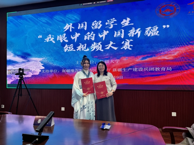 外国留学生“我眼中的新疆”短视频大赛决赛中,永利官网国际文化交流学院哈萨克斯坦籍留学生玛丽卡姆获得个人组一等奖;永利官网共建的吉尔吉斯国立民族大学孔子学院的萨姆获得个人组二等奖;吉尔吉斯国立民族大学孔子学院的思默克、达莉娅和阿赛玛获得团体组三等奖;永利官网国际文化交流学院吉尔吉斯斯坦籍留学生赛义德、哈萨克斯坦籍留学生萨娅及玛迪娜获得团体组三等奖;奥什国立大学孔子学院的唐苏露、卡米拉和别克扎特获得团体组三等奖。