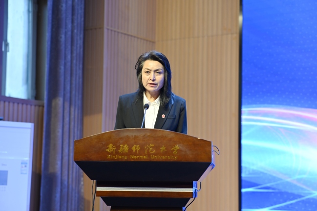开幕式上,帕力旦·吐尔逊致欢迎辞,她首先向参会专家、学者、教育工作者表示了欢迎,随后介绍了学校在学科建设和课程建设方面所取得的成效以及教育科学学院立足新疆基础教育发展的需要开展的工作。她表示,高校与一线学校之间的理论与实践对话是推动教育改革与发展的重要途径,希望加强深度对话和深化合作,共同为自治区教育事业发展贡献智慧和力量。