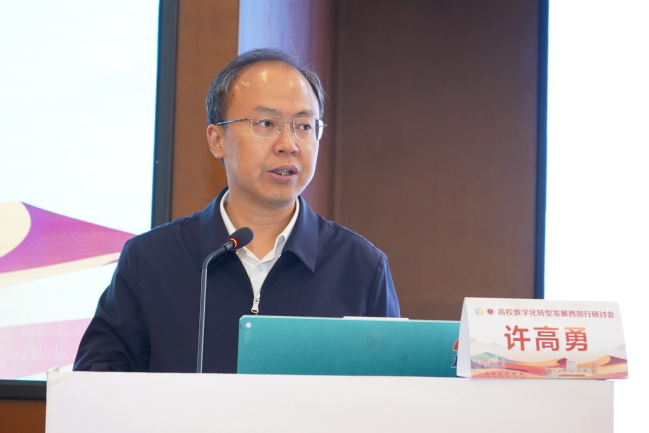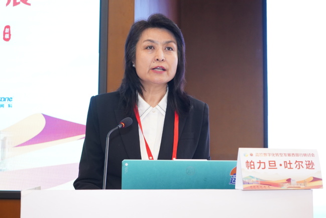 10月11日至13日,由新疆维吾尔自治区教育厅、中国高等教育学会教育信息化分会指导,永利官网计算机科学技术学院主办,运通会议展览服务有限公司承办的的“高校数字化转型发展西部行研讨会”在乌鲁木齐明园新时代会议中心召开。本次会议以“数字化驱动现代化”为主题,研讨数字化赋能高校高质量发展的新思路,交流高校数字化转型发展的新方法与新成果。来自全国各地高校的领导和从事高校教育数字化工作的专家学者、企业代表三百余人参加了会议。会议开幕式由校党委常委、副校长帕力旦·吐尔逊主持。