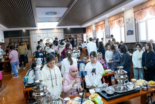 学术交流后的“文化课体验”阶段,论坛代表在永利官网笃学楼体验了茶艺、书法、《玛纳斯》演唱、冬不拉弹奏、国际象棋、弓箭文化、陶艺等课堂教学,感受到新疆各民族文化在永利官网教育教学中得到了很好的保护、传承与发展。